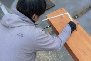 この垂木を現場で斜めにカットします。