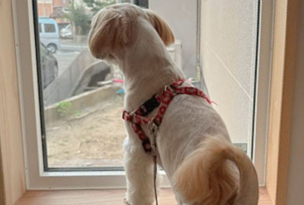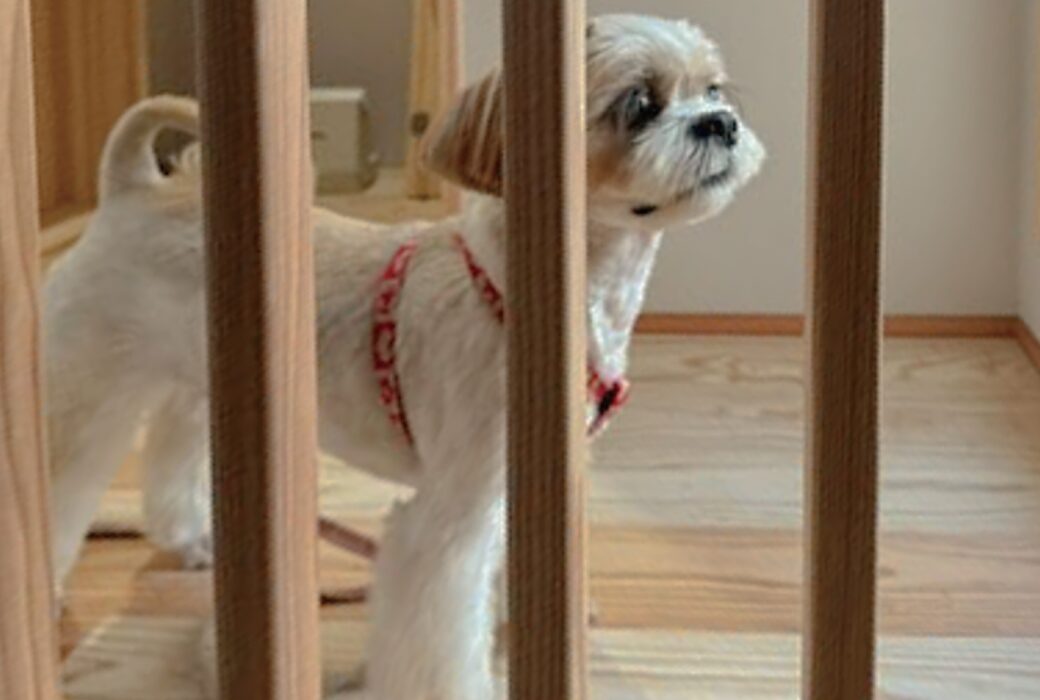 リビング横には格子で仕切られたわんちゃんスペースを設け、楓太くんは窓から外を眺め、家族はリビングでくつろぎながらその姿を見守れる間取りにしました。