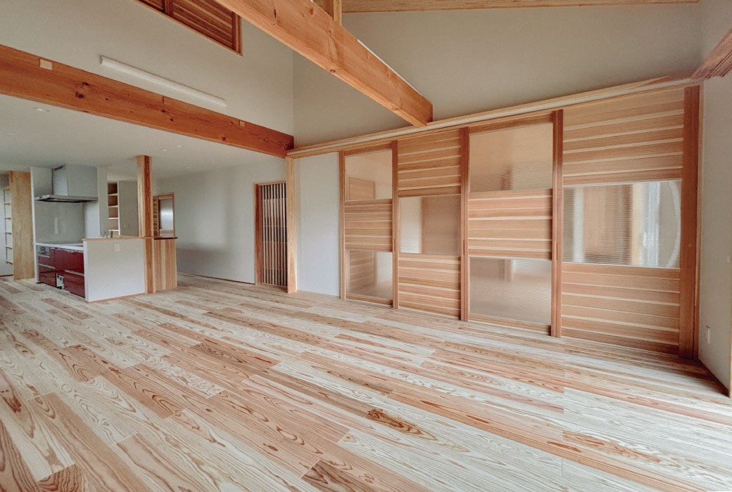 滑りにくい杉の床を採用し、楓太くんも安心して歩き回れます。